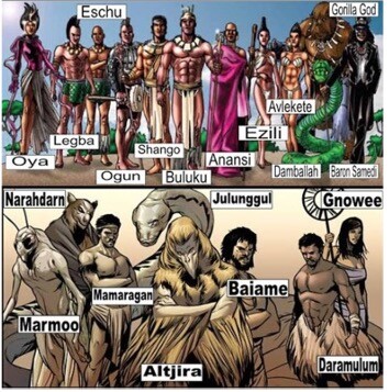 It did make me wonder why it is so, as other cultures do so proudly. And you may also notice that the above shown African and Australian Gods are quite different from the ancient Greek and Roman portrayals.