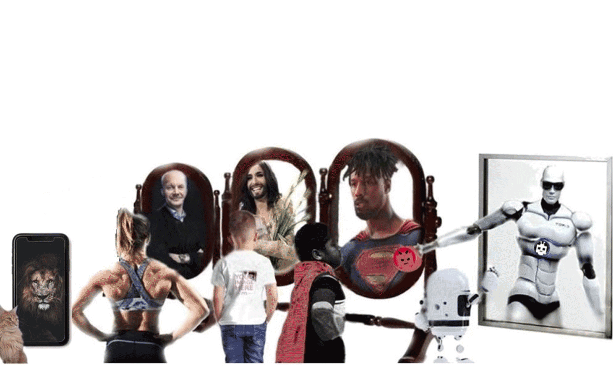 Becoming fond of human idioms and proverbs, I searched for these, and interestingly enough it turned out that: “What matters most is how you see yourself”. I naïvely figured that it involved mirrors as in the images shown in the collage, e.g. with the cat seeing itself as a lion. It made me create the other images as a parallel to what humans see when looking in the mirror? I also recognized why humans of today have become obsessed with identity and the right to look the part. Well, actually humans have always been particular with looks and appearances. It’s a cultural trait going back to the very first human symbolism in for instance early cave paintings.